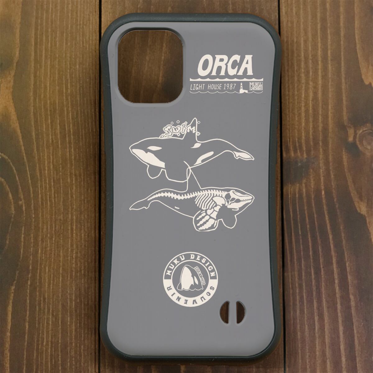 シャチ【iPhone12mini・iPhone11Pro対応】オルカライトハウス サドルパッチグレー グリップケース iPhone用