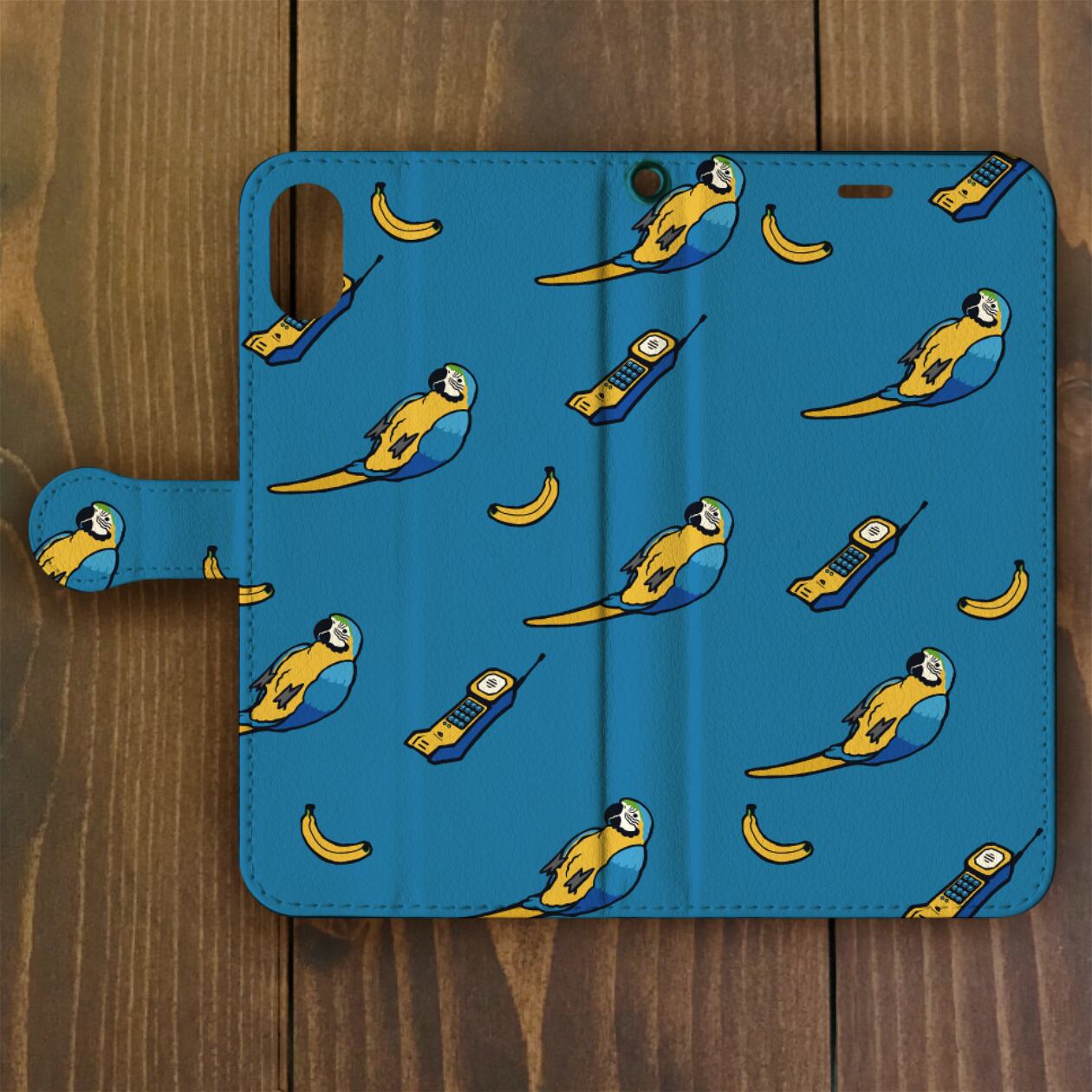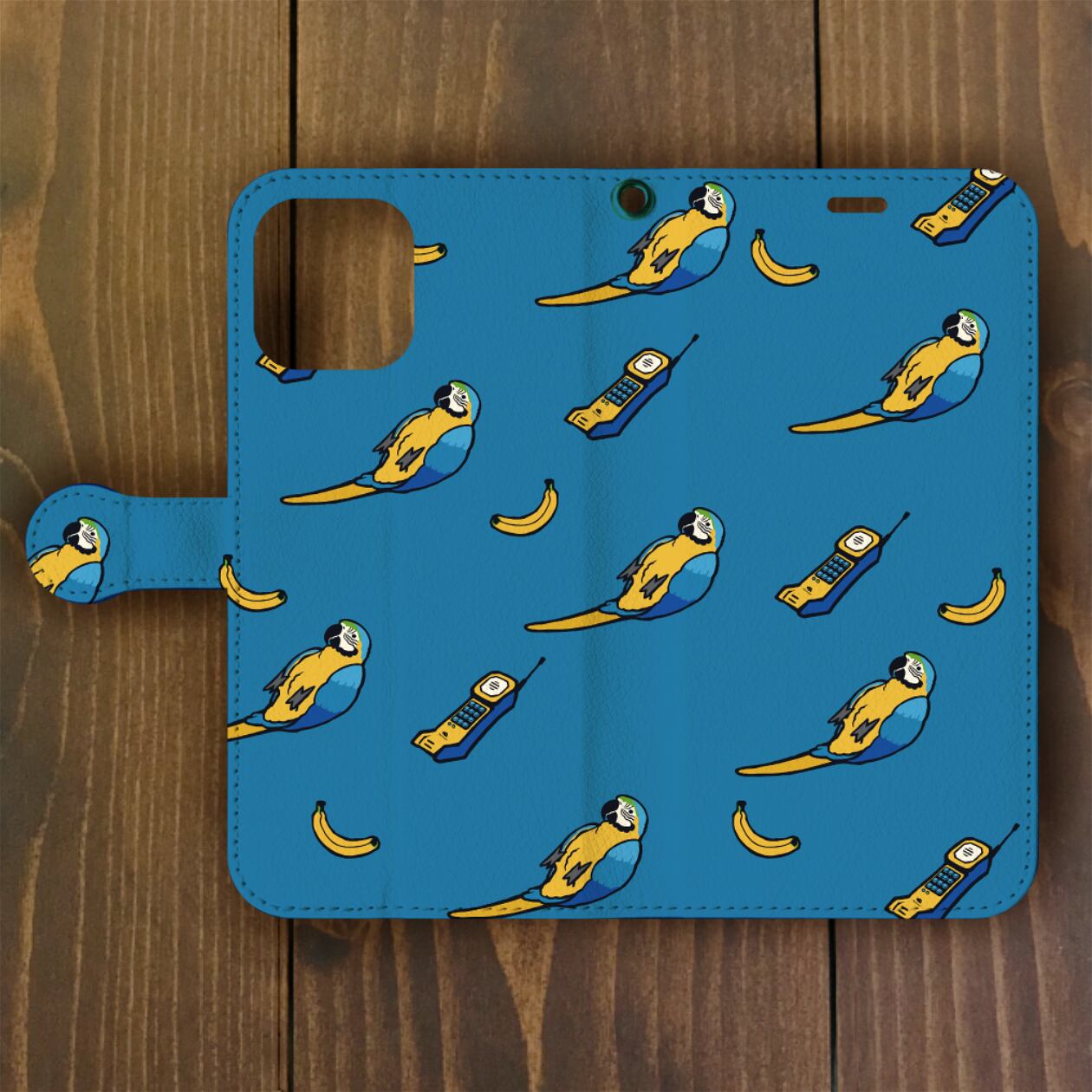【iPhone11Pro 対応】ルリコンゴウインコ・パターン・ブルー手帳型スマホケースiPhone用【各機種あります】