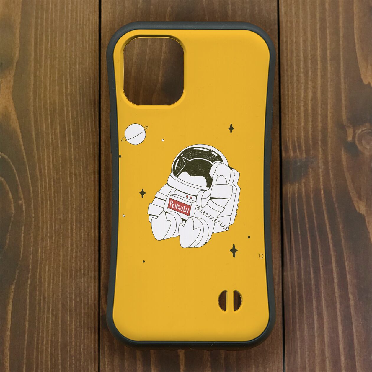 ペンギン【iPhone12・iPhone11対応】うちゅう・イエロー グリップケース iPhone用【各機種あります】