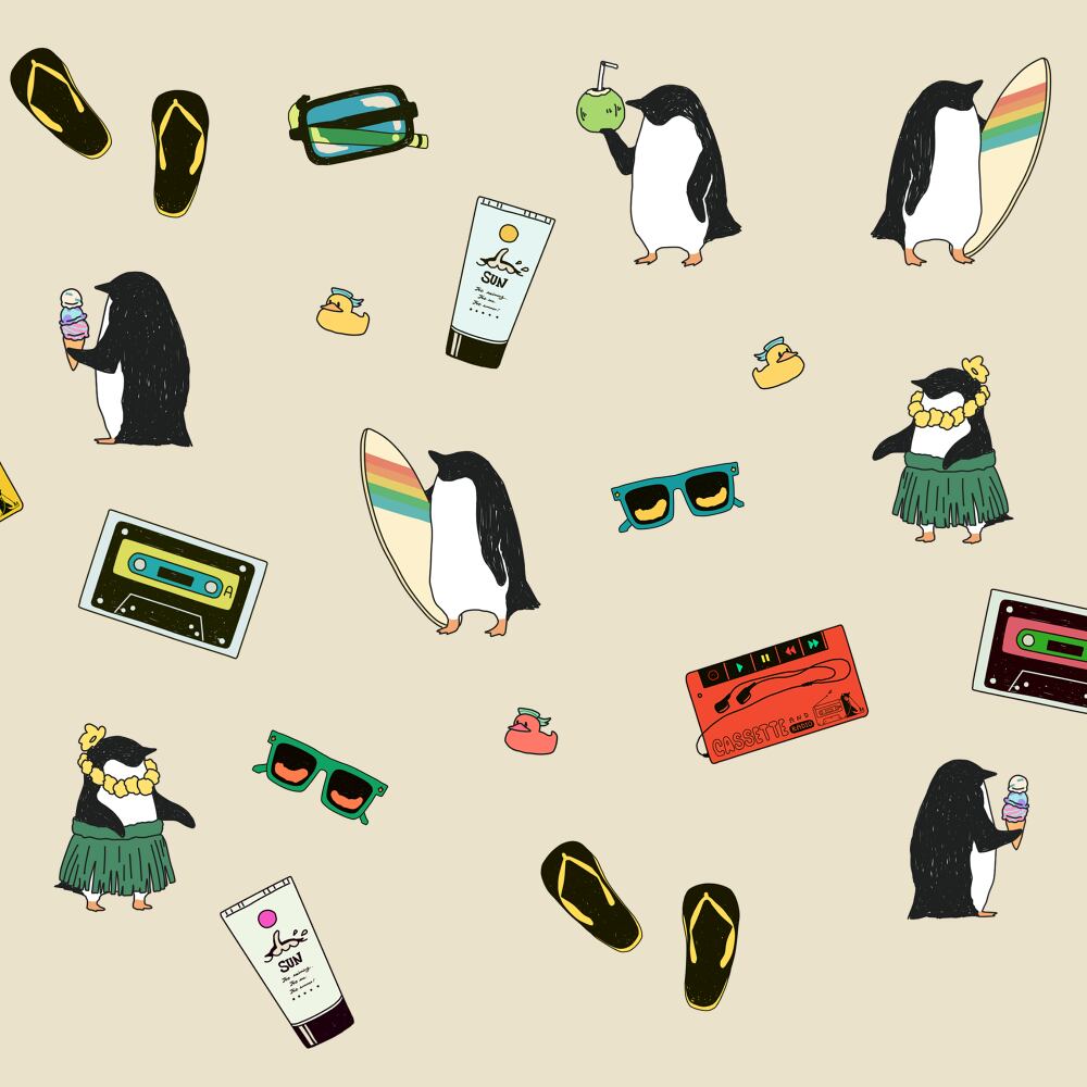 ペンギン【iPhone12mini・iPhone11Pro対応】ペンギンサマー1987・サンドカラー・グリップケースiPhone用