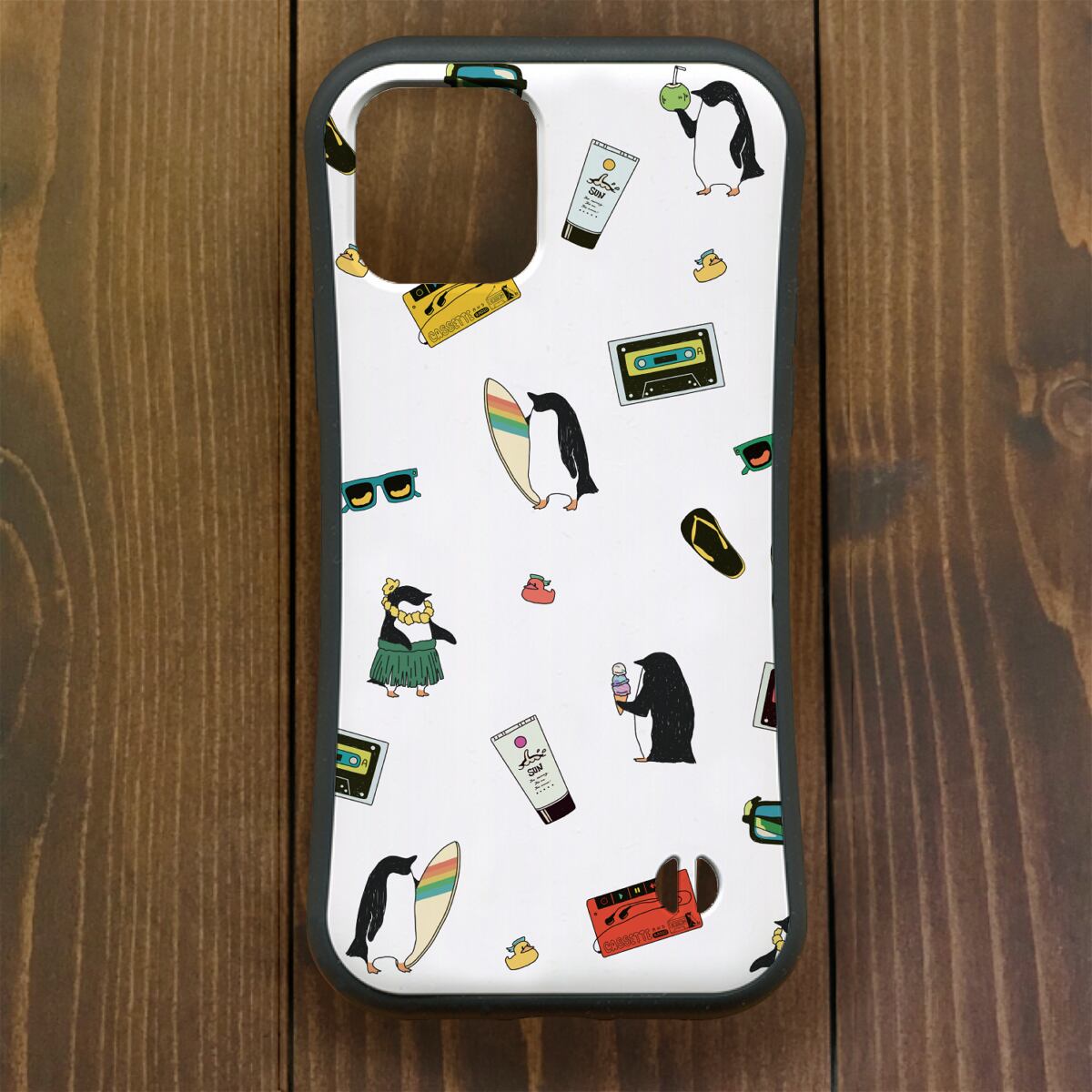 ペンギン【iPhone12mini・iPhone11Pro対応】ペンギンサマー1987・ホワイト・グリップケースiPhone用
