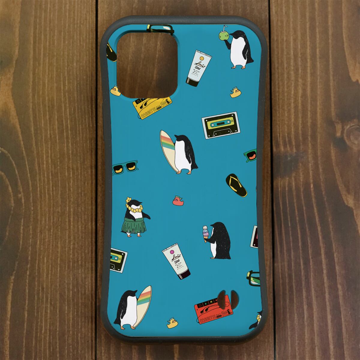 ペンギン【iPhone12・iPhone11対応】ペンギンサマー1987・ブルー・グリップケース