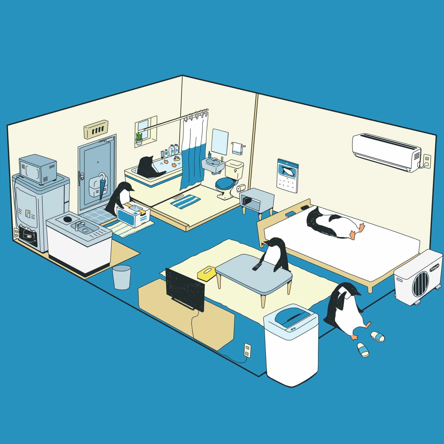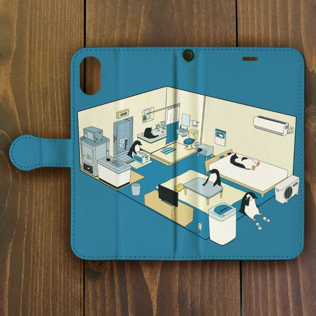ペンギン【iPhone 12対応】手帳型ペンギン・ルーム・ブルー iphone用手帳型ケース【ペンギン】