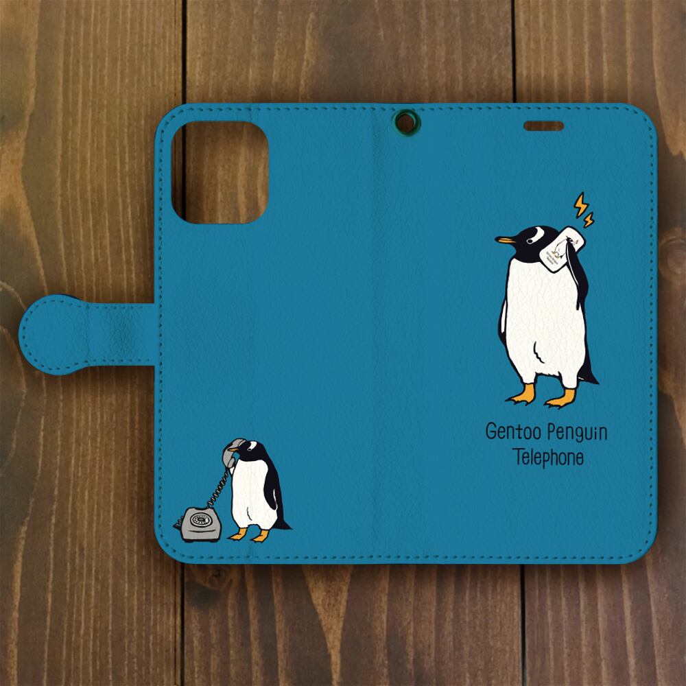 【iPhone11Pro 対応】手帳型ジェンツーペンギン・トーキング・ブルーiphone用手帳型ケース【各機種あります】
