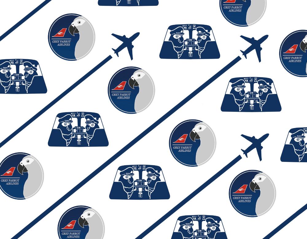 架空の航空会社のグッズをイメージした、ヨウムのパスケースです。