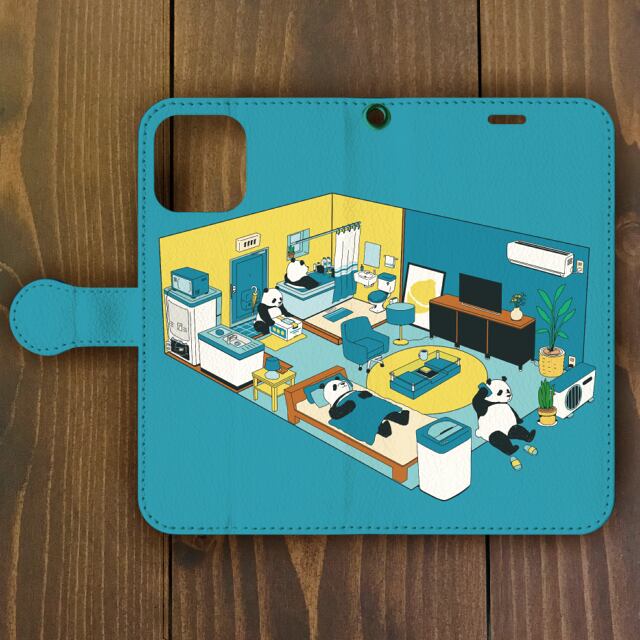 パンダ【iPhone 12対応】手帳型パンダ・ルームツアー・ブルー iphone用手帳型ケース【ペンギン】