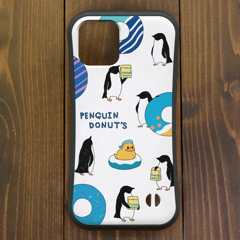 ペンギン【iPhone12・iPhone11対応】ペンギン『D』ドーナツホワイト グリップケース iPhone用【各機種あります】
